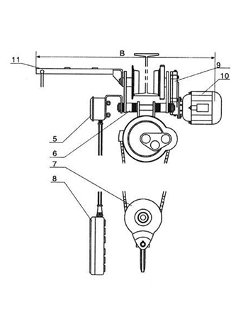 磅磁剎車:新設計的磁力產生器,其特性為產磁。可在電源切斷的同時間剎車,保證吊重時剎車確保安全。極限開關:吊上吊下都有極限開關裝置,使自動停止,防止鏈條超出,確保安全. .